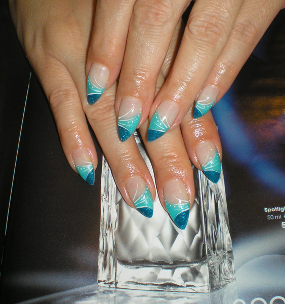Anikó - Türkizes körmök fehér mintákkal